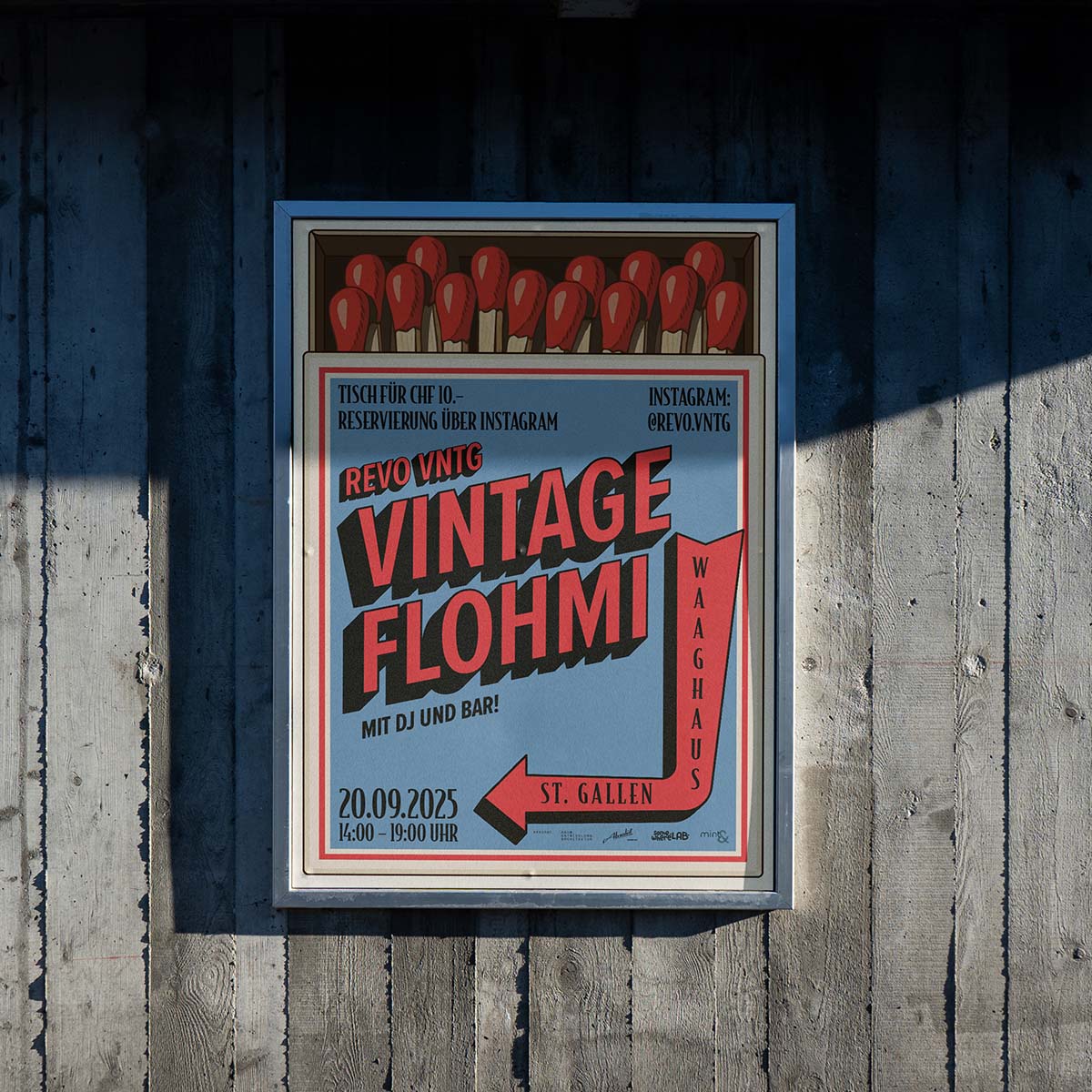 Revo VNTG hosted its first Vintage Flea Market at the Waaghaus in St. Gallen. At Absolut Agency, I had the pleasure of designing the event poster and shaping its overall visual presence. We developed the branding, communication, and merchandise for an event that reimagines vintage culture and amplifies the scene with fresh energy. The market featured curated brands such as Demond, FREITAG, and Serving Silver, bringing together a community that blends sustainability, street culture, and contemporary design. Client: Revo VNTG Project: Client work at Absolut Agentur