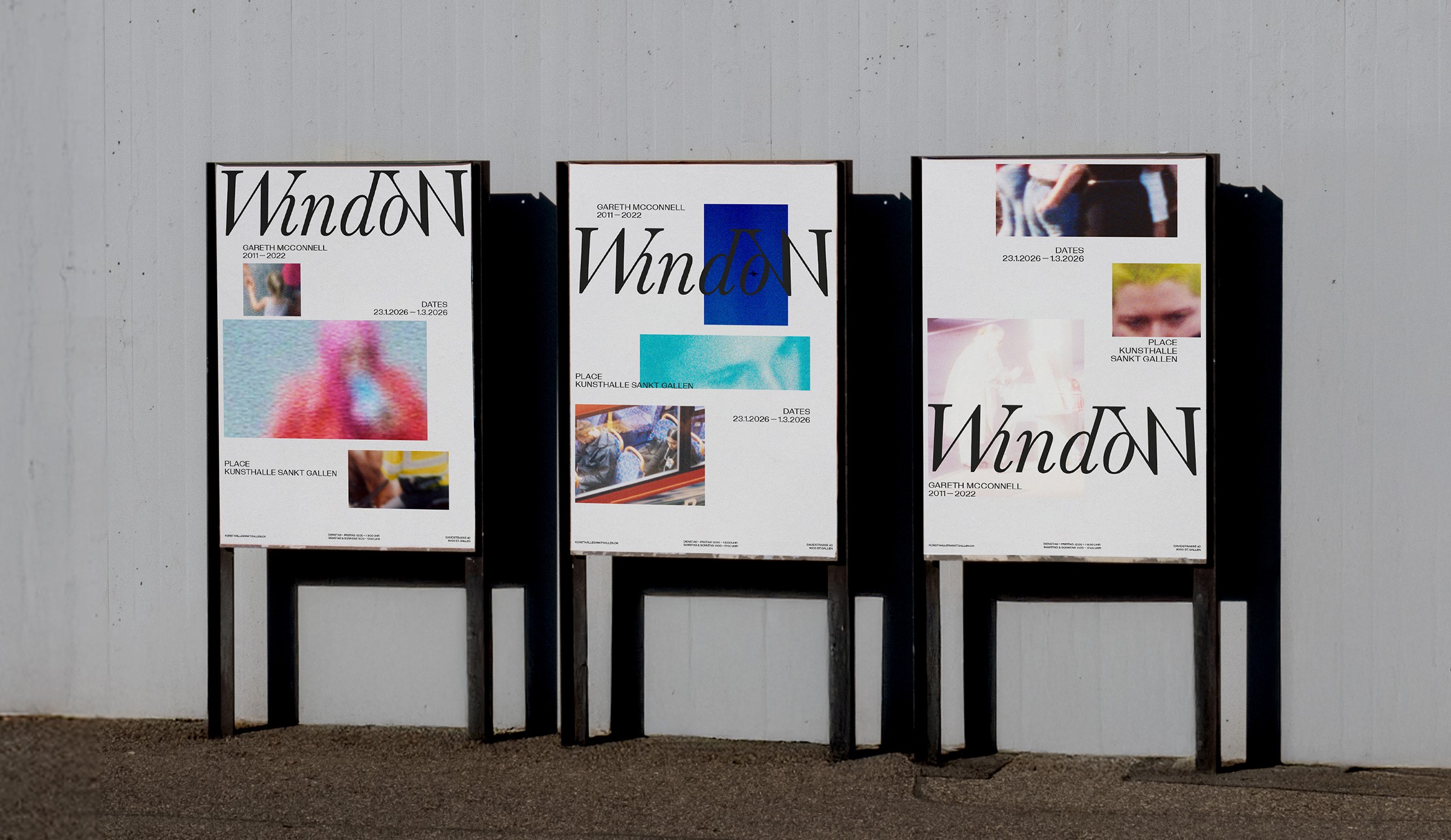 This School project involved developing the visual identity for a fictional exhibition of Window, a photographic series by Gareth McConnell. In this series, McConnell captured photographs between 2011 and 2022 from his apartment in North London, documenting scenes observed through his window. The images explore themes of distance, voyeurism, and the subtle tension between private and public space. The task was to design a visual identity to promote the exhibition, working closely with the photographic material. The aim was to create a strong teaser that reveals just enough to spark curiosity and encourage visitors to experience the exhibition in person. Lecturer: Laura Prim and Nicolas Bernklau Project: School project in collaboration with Leana Domanig